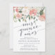 O convite elegante e moderno para quinceanera floral apresenta um buquê de rosas de aquarela pastel macia, peonias e híbridos em tons de rosa-pincel, pêssego e creme, com folhas botânicas verdes e eucalipto. Personalize com seus detalhes de celebração da quinceanera em letras elegantes azuis de enfumaçado acentuadas com caligrafia de estilo manuscrito.