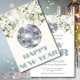 Marque a cena de uma comemoração temática do Disco. Branco e verde é a cor de fundo para este design de Ano Novo elegante e personalizado bola Disco floral. Altere facilmente as informações para o seu próprio convite personalizado. Design Divertido Disco.