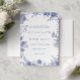 Projetado para coordenar com a nossa coleção Toile French Blue Garden, este cartão de convite de casamento personalizável e correspondente apresenta um floral no estilo francês no estilo toile blue. Para personalização mais avançada deste design, por exemplo, alteração do layout, da fonte ou do tamanho do texto, clique no botão "PERSONALIZAR" acima. Por favor, entre em contato comigo para qualquer pergunta!