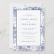 Projetado para coordenar com a nossa coleção Toile French Blue Garden, este cartão de convite de casamento personalizável e correspondente apresenta um floral no estilo francês no estilo toile blue. Para personalização mais avançada deste design, por exemplo, alteração do layout, da fonte ou do tamanho do texto, clique no botão "PERSONALIZAR" acima. Por favor, entre em contato comigo para qualquer pergunta!