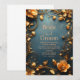 Convites Floral Dourado de Luxo em Fundo Azul Turquesa Eleg