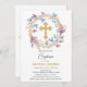 © Socialite Designs & LICENCORS. Celebrar um marco sagrado com elegância eterno usando este Elegante Dourado Cruzamento Batismo Convite Floral por Designs Socialitas. Apresentando uma cruz de ouro refinada rodeada por florais de cor aquosa em pincel, marfim e verde, este convite dá um tom sereno e gracioso para a celebração do batismo do seu filho. O layout oferece texto personalizável para detalhes de cerimônias, nomes de famílias e informações de recepção, fazer-o perfeito para reuniões tradicionais e modernas. Quer você esteja hospedando uma igreja ou um brunch de jardim, este convite combina fé e beleza de uma maneira realmente significativa.