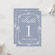 Classy and elegant botanical floral white and dusty blue wedding table numbers. As you see it features a blue old money background with white script that match the whole suite. And white outline floral frame.