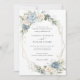 Floral Dusty Blue White Geometric Gold Wedding Invitation Card, Elegant Greenery Wedding Invitation