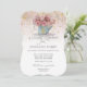 "Floral Dusty Rosa Dourado no Convite de Roupa Branca Bridal." Uma design romântica e feminina com um bule de chá azul-antigo francês pastel em forma de rega com uma abelha rainha dourada com coroa contém rosas rosa poeirentas sobre um simples fundo branco. Você pode adicionar sua própria escolha de cor se desejar, apenas nos mande mensagem. A tipografia da caligrafia rola e floresce. Concebido por artista e designer com licença internacional, Audrey Jeanne Roberts, copyright, todos os direitos reservados.