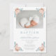 Convite Personalizado De Batismo Fotográfico De Menino Elegante Floral.
