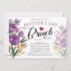Os convites elegantes para Dias de as mães florais, almoços ou janto apresentam bordas florais de cor d'água roxa e o roteiro moderno ''dia de as mães brunch''. Personalize esses convites florais com os detalhes do seu Dia de as mães brunch ou da festa em caracteres de bloco preto.