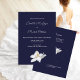 A Magnolia Branca Elegante Floral no Convite de Casamento de Marinho desenhado com a Magnólia Branca brilhante floresce num fundo de marinho. O texto inicial inclui: Nomes de noiva e noiva, data de casamento, localização e endereço em texto branco. O texto inverso inclui: Recepção, Detalhes de Recepção, RSVP e os detalhes de RSVP. Para personalizar, simplesmente insira seu texto em nosso modelo fácil, substituindo o exemplo. Não se esqueça de ver toda a Floral Elegante da Magnolia Branca na Coleção de Casamentos de Marinhos para papelaria e acessórios correspondentes.