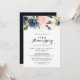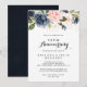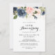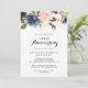 Este convite de aniversário de 50 anos de casamento com caligrafia floral de inverno elegante é perfeito para uma celebração de aniversário moderna. O design apresenta lindas flores pintadas à mão em azul escuro, azul, azul-marinho, rosa, rosado, dourado e folhagens verdes, agrupadas em buquês elegantes.