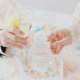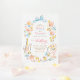 Este convite de casamento caprichoso, porém elegante, captura a emoção do dia com uma reviravolta lúdica e artística. Os florais de aquarela desenhados à mão se transformam em uma grinalda solta e expressiva, combinada com ilustrações encantadoras na lateral da mesa — champanhe, velas, bolo e cristais — trazendo à vida uma estética aconchegante e comemorativa de uma mesa posta.
