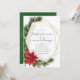 Trendy rustic christmas convite de comunhão sagrado com estrutura geométrica dourada e tipografia elegante com sinos de trenó, flores de poinsettia, sagrada, névoa e pinheiro.