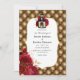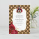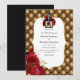O convite de casamento de Crimson Red e de ouro gótico com uma garrafa de poção com rosas vermelhas e um fundo tufado de luxo de diamante.