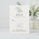 RSVP moderno da arte clássica. Uma flor de arte simples enfeita o topo deste RSVP preto e branco sobre um fundo de marfim ligeiramente texturizado. Convite de correspondência disponível.