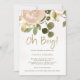 Este elegante convite para o chá de fraldas apresenta as tradicionais flores aquáticas em tons de rosa cor rosa, poeirento, e esticadas com bastante verde e sotaques dourados modernos e falsos e tipografia que diz "oh boy!". Sutil cor-de-água rosa-pincelada parece cinzas decoram o fundo.