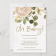 Este convite para chás de fraldas elegante, neutro em termos de gênero, apresenta flores de cor-de-água em tons de rosa cor rosa, empoeirado, e esticado com bastante verde e sotaque de ouro moderno, falso e tipografia que diz "oh baby!". Sutil cor-de-água rosa cor-de-rosa, molhe o fundo.