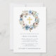 Este belo batismo ou convite batizante para um menino ou uma menina apresenta uma coroa de flores aquáticas em tons neutros, beges, marfim e azuis empoeirados, e uma cruz de ouro falso no centro. A parte traseira da placa apresenta buquês florais azuis nos cantos.