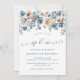 Esta moda e belo bebebe e vê o convite apresenta flores aquarelas em tons neutros, beige, marfim, poeirentos e azuis e elegante roteiro de caligrafia azul.