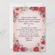 Flores vermelhas, cor-de-rosa e brancas rodeiam uma armação dupla de ouro, sobre um fundo rosa-casca para criar um belo convite para o casamento. Muito elegante e perfeito para um casamento formal.