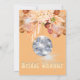 Marque a cena de uma comemoração temática do Disco. Laranja é a cor de fundo deste design Chá de panela personalizado elegante de bola Disco floral. As manchas de prata também estão no design. Altere facilmente as informações para o seu próprio convite personalizado. design de casamento chá de panela.