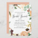 Vamos chá a noiva com amor e elegância! Nossos belos Convites de chá de panela botânicos estão cheios de uma graciosa estrutura de cor d'água de flores, folhas de eucalipto, fatia de laranja e folhagem em uma nova paleta de tons brancos, laranja de marfim, verdes e rosa. Adicione os detalhes da sua festa à tipografia da cinza moderna com "Bridal Brunch" em letras de caligrafia de cinza. O reverso da carta está em um rosa laranja harmonioso. Sofisticado e chique! Perfeito para comemoração durante a primavera ou festas de verão no final do verão Para obter apoio ou solicitação personalizada, entre em contato conosco através da loja ou escreva no site citronelladesign@gmail.com Matching with Lemons and Leaves