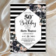 Convites Floral preto moderno com risca 50ª Festa de aniver