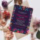 Celebre uma Quinceañera vibrante e tradicional com o nosso Convite de Aniversário de Fiesta Mexicano Floral. O convite apresenta um clássico fundo roxo, enfeitado com animados padrões florais cor-de-rosa, turquesa, laranja e cor de rosa. O texto é apresentado elegantemente em branco e rosa claro, criando um belo contraste. O verso do convite mostra um buquê de flores tradicionais arranjadas num padrão charmoso no fundo roxo profundo. Este convite captura a essência das tradições mexicanas, fazer-o a escolha perfeita para uma memorável celebração da Quinceañera. Personalize os detalhes para torná-lo exclusivamente seu e dê o tom para uma ocasião festiva e alegre.