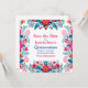 Anuncie o seu dia especial com a nossa Fala Quinceanera Mexicana Fiesta Salve o Convite de Data. Apresentando um fundo branco pristino adornado com padrões florais vibrantes, cor de laranja e cor de rosa, este convite complementa lindamente a tipografia azul-rosa-quente e real. Projetado para capturar o espírito festivo de uma Quinceañera, este convite para Salvar a Data garante que seus convidados marquem seus calendários para sua celebração. Criado a partir de materiais de alta qualidade, oferece atração visual e durabilidade. Ponha o tom para o seu evento com a elegante e alegre Quinceanera Mexicana Fiesta Salve a Data do Convite.