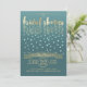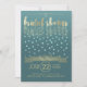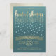 Selecione a sua própria cor de fundo para complementar o espantoso texto dourado deste belo chá de panela. Pequenas flores azuis borrifam suavemente a partir do texto moderno do script manuscrito no topo e é fornecido um modelo para inserir os detalhes do evento abaixo. As costas têm um padrão de ouro de efeito texturizado maravilhosamente.