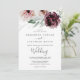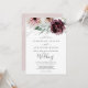 Este cartão de convite para casamento floral romance é perfeito para um casamento elegante. A moderna design do bico rústico apresenta flores românticas a aquarela em tons macios de burgundy, mauve, rosa-pincel e branco-creme com folhas verdes.