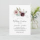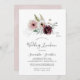Este convite para o almoço de romance floral é perfeito para um chá de panela elegante. A moderna design do bico rústico apresenta flores românticas a aquarela em tons macios de burgundy, mauve, rosa-pincel e branco-creme com folhas verdes.