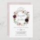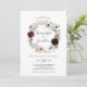 Este convite para casamento de romance floral é perfeito para um casamento elegante. A moderna design do bico rústico apresenta flores românticas a aquarela em tons macios de burgundy, mauve, rosa-pincel e branco-creme com folhas verdes.