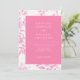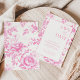 Este convite refinado rosa e branco exibe uma elegante borda floral inspirada em toile e um centro nítido e minimalista para os detalhes do seu casamento. Uma tipografia lindamente equilibrada combina uma fonte cursiva graciosa com letras serif clássicas para um sentimento atemporal e romântico. Totalmente personalizável com seus nomes, data e local do casamento, este design é perfeito para anunciar sua celebração com estilo. Uma escolha ideal para casamentos tradicionais, de jardim ou à beira-mar, definindo a primeira impressão perfeita para o seu dia especial.