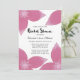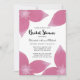 Convite branco Elegante para Chá de panela com listras quic no verso e bonito texto floral e preto cor-de-rosa na frente do cartão.