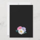 Um vibrante convite à festa de noivado floral, bordado a preto, com flores rosa e roxas, margaridas brancas e verde à volta do texto.