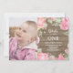 Convite Rustic First primeiro aniversario com foto personalizada. Floral Botânico Cor de Água Rosa. Convite de Aniversário para Garota de Peões Rosa Floral. Flor Floral de Água. Rosa Rosa Rosa Elegante e Flores de Pequim.Aniversário de crianças. Fundo Da Madeira Rústica.Preto & Branco. 13 15 16º 18º 20 21 rua 30 40º 50º 80 de 60º 70 de 100º, qualquer idade.