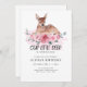 O doce "veado pequeno está virando um" convite de aniversário com flores cor-de-água rosa com verde e veado-bebê pintado à mão. Você pode personalizar o texto, o estilo da fonte, a cor e o tamanho em frente e atrás do convite.