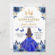 Convites Floral Royal Blue Bilingual Espanhol Quinceanera