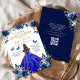 Convites Floral Royal Blue QR Code Princesa Quinceanera