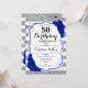 Convites Floral Royal Blue Silver Foto 50º Aniversário