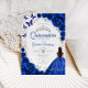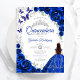 Convites Floral Royal Blue Silver Quinceanera