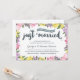 Este elegante e moderno convite de 75º aniversário de casamento apresenta uma adorável caligrafia de pincel; lindas flores rosa, roxas e amarelas; e tipografia rústica que diz "Casados (setenta e cinco anos atrás!)."