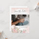 Dólar de areia, estrela e design de quadros florais cor-de-rosa pincelado com foto de noivado no centro e fonte de estilo manuscrito Elegante Salve a data, design de texto de script longo e estendido. O texto pode ser movido e as cores da fonte podem ser alteradas com mais personalização. A parte traseira desta foto oferece espaço para uma foto adicional e pode ser alterada para qualquer cor.
