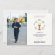 Compartilhe a sua gratidão com este refinado cartão da Primeira Comunhão. Sua foto do filho aparece à esquerda, enquanto o lado direito apresenta uma delicada coroa floral com ícones de pão e cálice. Corresponder padrão de folha e ramificação no verso completa esta manutenção editável.