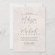 Esta design apresenta um convite de casamento para um guião de caligrafia floral elegante, com um guião de caligrafia na moda, um mínimo clássico e moderno, uma folha de folhagem na moda, uma folha de rosa romântica de jardim, uma suite formal tradicional, com ampero de caligrafia, e monograma de volta, noiva e noivos, com uma cor rosa pálida e neutra. trabalho de arte desenhado à mão