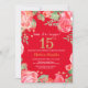 Convites Floral Surprise 15 Birthday Dourada Glitter e Red