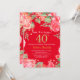 Red Floral Surprise aniversário de 40 anos Convite para Mulheres. Flor Botânica De Aquarela Dourada Glitter. Flores Florais De Pêonias Rosa. Aniversário Adulto. Fundo Vermelho. Para mais personalização, clique no botão "Personalizar" e use nossa ferramenta de design para modificar este modelo.