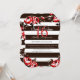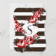 Listras elegantes, negras e brancas com flores vermelhas Doce 16 convites de festas de celebração. Design muito clássico e sofisticado para a senhora de aniversário clássica. Personalize com sua própria mensagem e monograma no verso. Todas as impressão de fotos.