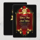 Convite de casamento floral romântico e moderno com as cores preto, dourado e vermelho - cores clássicas que nunca saem de moda.