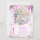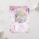 Design apresenta cores pastéis como lavanda, hortelã e rosa-bebê, adornada com flores de wisteria suaves e borboletas lúdicas. Estes elementos criam uma sensação mágica e suave. O convite contém as palavras "Flutter on over" em um guião brilhante de brilho dourado, adicionando um toque de brilho e diversão. Este simples, mas encantador design é perfeito para uma feliz celebração de aniversário como primeiro aniversario, 7 aniversário e muito mais.