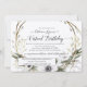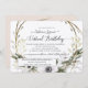Floral Wreath Cinza Escamoteando Convite Virtual de Aniversário Russo." Celebrando um aniversário importantíssimo e você não consegue se reunir na vida real? Aqui está um convite que pode ajudar seus familiares a se juntarem à comemoração e navegarem maravilhosamente no processo. Paleta colorida Boêmica com Mudo, cor de terra com uma cor de água floral.Flores anêmonas brancas, eucalipto-sujo e folhagem de folha de azeitona, verde-suja-úmido e ramos salgados de rã-cinza formam uma coroa. Criada e projetada pela artista internacionalmente conhecida e licenciada Audrey Jeanne Roberts. Direitos autorais.